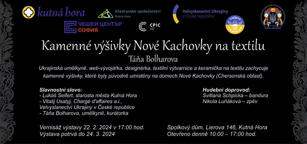 Výstavu připravila ukrajinská umělkyně Tanya Bolharova, která je web-vývojářkou, designérkou, keramičkou a textilní výtvarnicí. Zachycuje kamenné výšivky, které byly původně na domech v oblasti Nove Kachovky (Chersonská oblast). Umělkyně tyto výšivky přenesla na textil a zachytila tím unikátní kamenné výšivky, které jsou již nyní nenávratně zničeny.